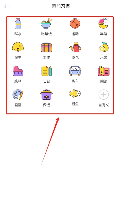 2、在弹出的界面里选择你想记录的事项,比如喝水、运动之类的。