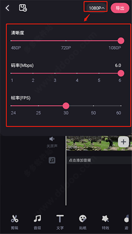 3、在界面的右上角,你能看到视频的清晰度相关信息,点击这个区域,就可以自主调整视频的清晰度、码率以及帧率参数。