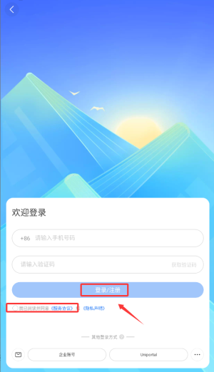 3、输入常用手机号码并获取短信验证码,填写正确验证信息后即可完成登录。