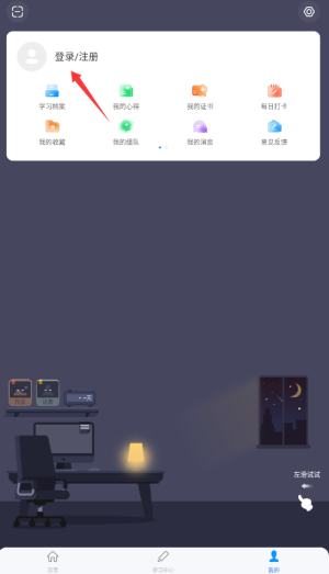 1、启动时习知后,点击底部导航栏"个人中心"图标,进入账户管理界面