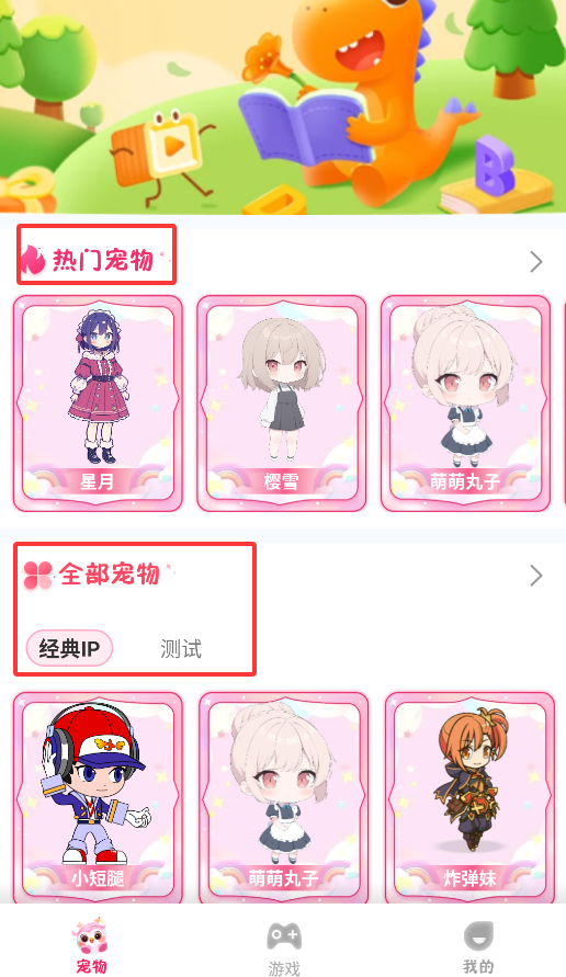 1、启动后,在“宠物乐园”浏览热门萌宠,支持按IP、年龄筛选。