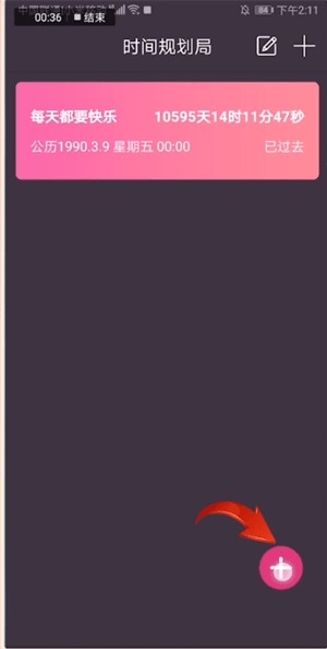1、在时间规划局主界面点击“+”按钮,添加一个新的倒计时,将其名称标题设置为“生日倒计时”。