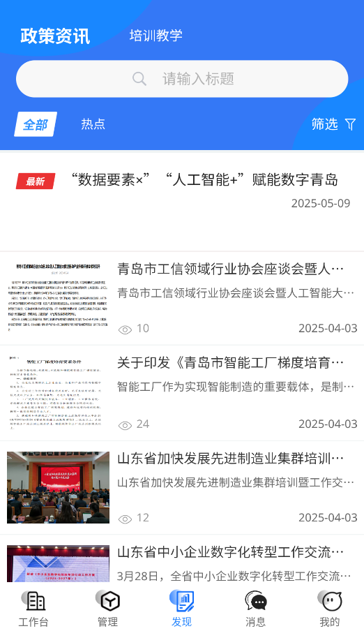 2、借助“发现”板块,用户能够查阅到最新的政策解读文件以及企业转型相关的培训课程资源。