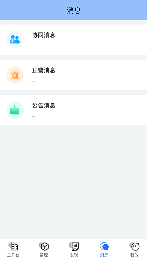 3、“消息中心”对协同办公通知、风险预警提示、企业公告等重要信息进行分类管理。