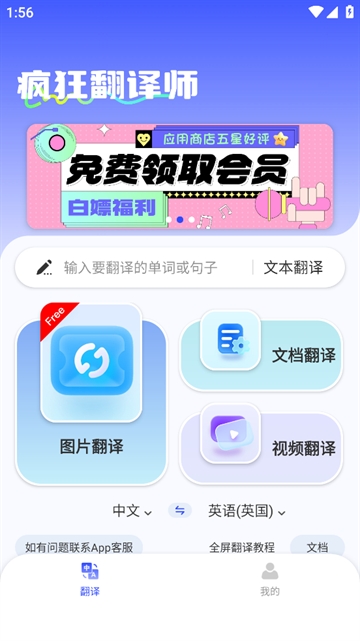 2、用户既可以通过点击首页的【图片翻译】功能来翻译小说,也能尝试其他不同的翻译方式。