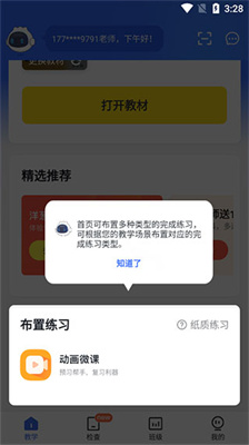 2、接着点击下方“布置练习”里的选项,既可以选择动画微课,也能够选择传统的备课模式。