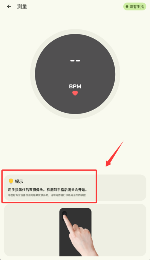 3、根据提示,把食指轻轻放在手机的后置摄像头上,保持姿势稳定,直到测量完成并显示出结果。