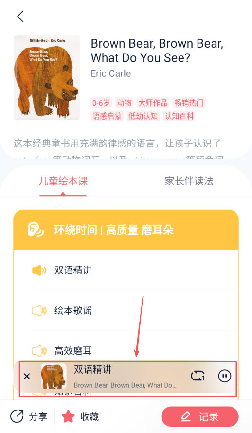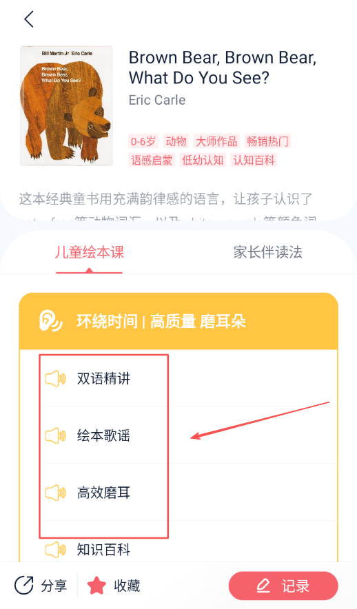 4、试听后若觉得合适,还可以在书籍详情页进一步选择阅读模式,像精读或者共读模式都可以,这样就能和孩子一同开启绘本阅读之旅了。