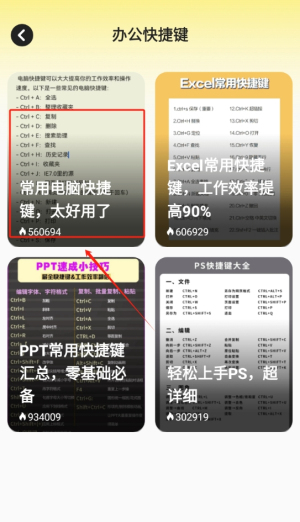 2、在应用内学习办公快捷键,借助系统化的讲解,助力提升工作效率,缩短日常操作时长。