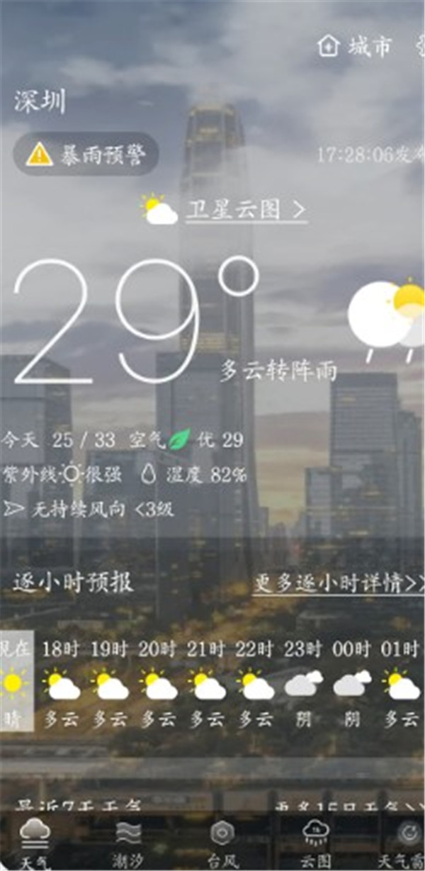 2、查看国内各城市的逐小时天气状况,以便及时掌握雨雪天气的动态变化