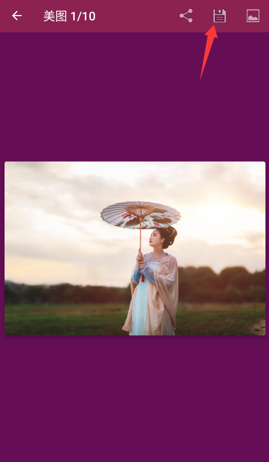 2、点击右上角的图标,能够把高清图片保存到手机相册里,也可以将其设置成壁纸。