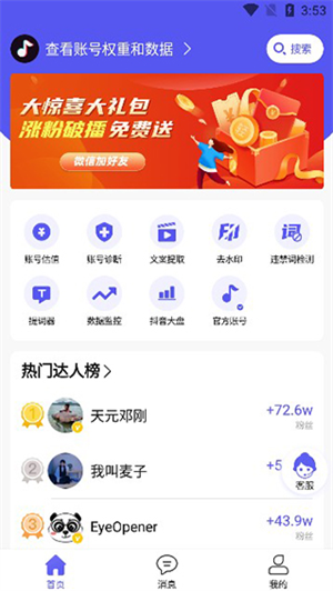 1、启动软件并进入主界面后,你将看到账号估值、账号诊断等多种功能选项。