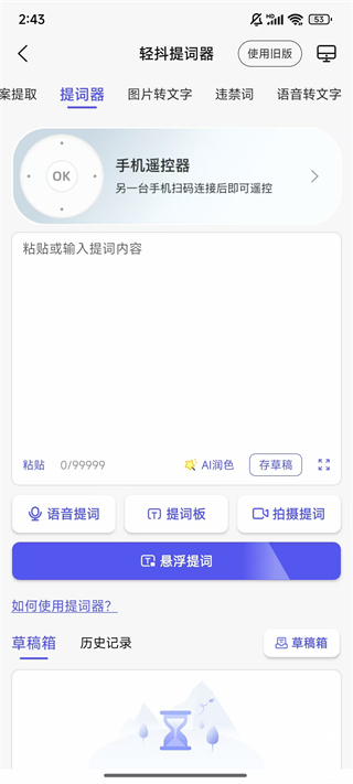 轻抖提词器是一款相当好用的提词工具,它的悬浮窗提词功能十分实用,能让你搭配任何视频拍摄软件使用,手机瞬间化身便携提词板,随时都能拿出来用,还支持边直播边看台词,不用再依赖多部手机提词,特别方便。此外,软件里还有海量素材可供选用,涵盖丰富的短视频热门内容,并且会实时跟进各领域视频的流量趋势。