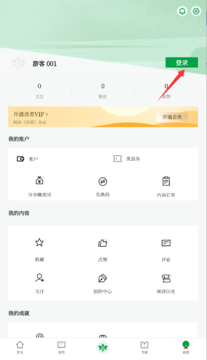 1、进入读者端后,点击底部导航栏的“我的”图标,即可进入账户管理页面。