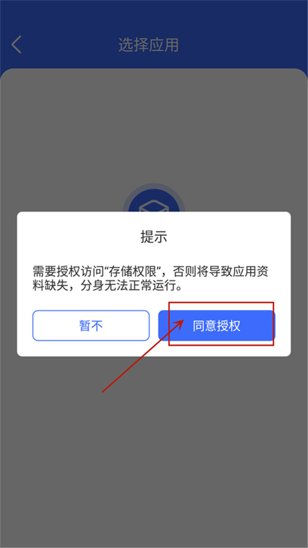 2、找到需要进行分身操作的应用,同意授予其“储存权限”的访问权限。
