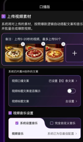 1、系统会自动生成配有字幕、音乐和特效的视频,从而省去不少繁琐的操作步骤。