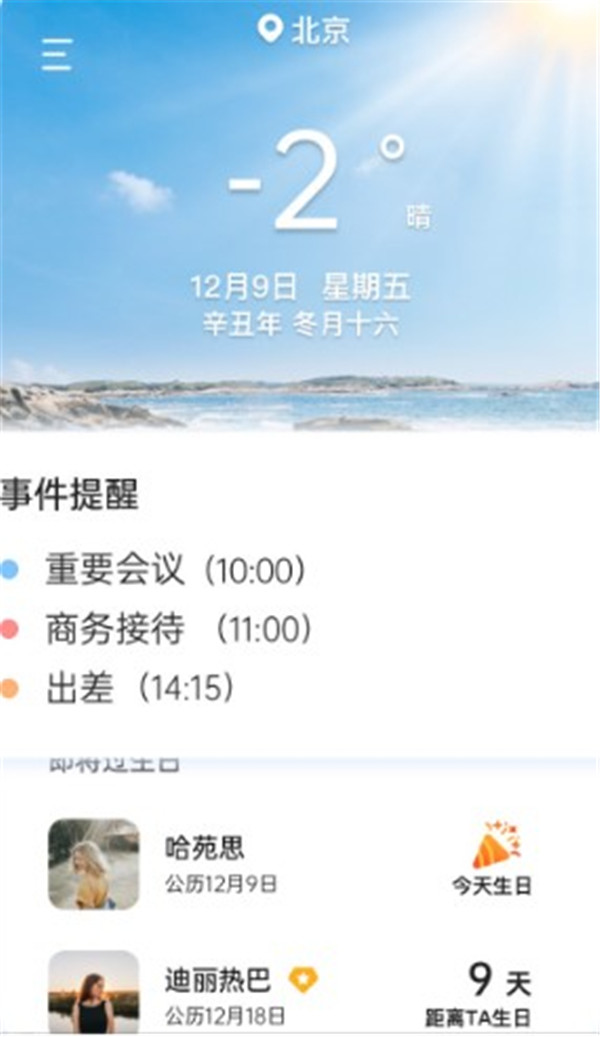 2、除了天气信息外,风和日历还具备日历功能,用户可通过它添加与管理日程、设置提醒事项以及跟踪重要日期等。