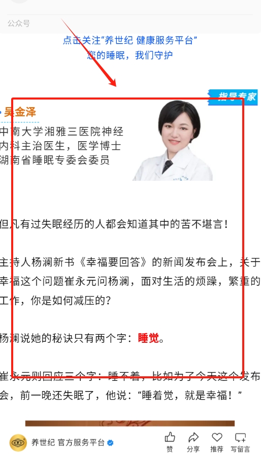 3、点击感兴趣的文章,即可查看详细内容,轻松学习睡眠相关知识。