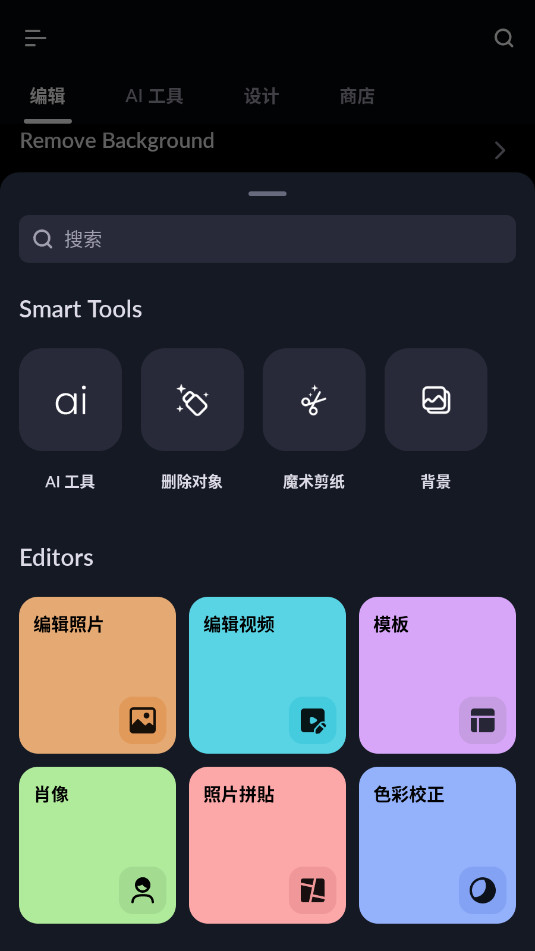 2、挑选你需要用到的功能,像修图、调色、合成之类的,再依据实际需求选用合适的工具。