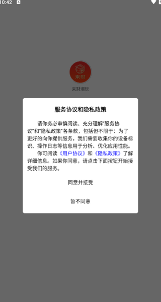1、在本站完成后,打开软件,这里会显示服务协议和隐私政策,我们只需要选择同意并继续即可。