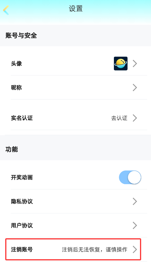 2、通过个人中心进入设置页面,在账户管理区域找到注销选项。