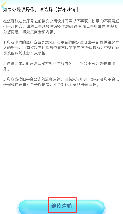 4、点击最终确认按钮,账号将在7个工作日内完成注销处理。