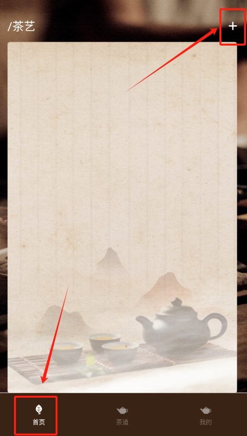 1、启动多多喝茶应用程序,在首页的右上角位置找到加号形状的图标,然后点击该图标。