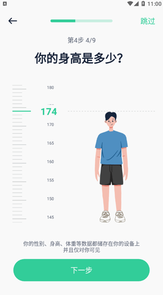 2、填写个人身体信息,像身高、体重之类的,这些信息数据仅用户本人可见。