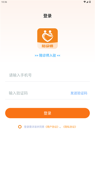 4、陪诊师使用手机号进行注册登录,入驻平台即可开启接单。