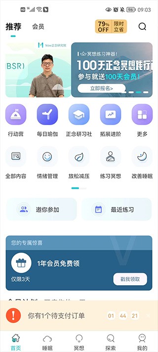 3、运用多维度的共学练习形式,用户可以和其他冥想者一起专注投入到冥想当中。