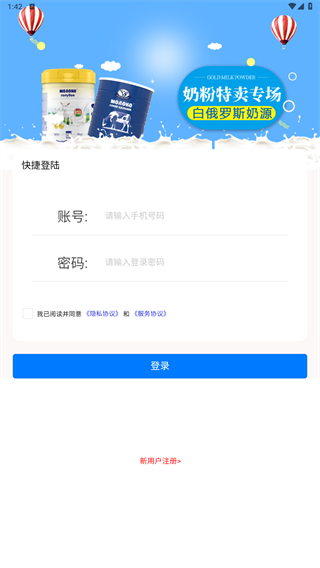 2、之前使用过的用户直接输入账号密码登录,新用户点击注册。