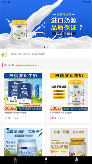 1、与多个知名奶粉品牌建立深度合作,提供从儿童到老年全年龄段奶粉产品,覆盖牛奶粉、羊奶粉等多样化品类。