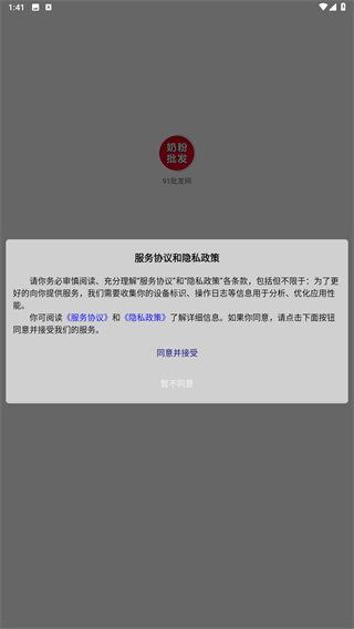 1、阅读服务协议与隐私政策后,点击同意进行下一步。