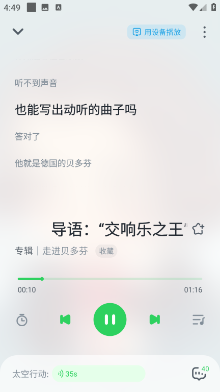 3可以通过浏览音乐分类列表,或者在搜索栏中输入关键词来定位自己想聆听的曲目,找到后点击播放就能开始欣赏。