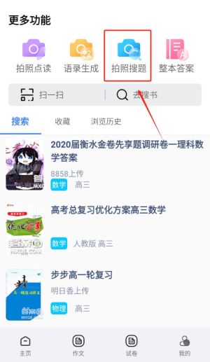2、上传所需照片以搜索对应题目,确保上传的图像清晰,以便系统准确识别。