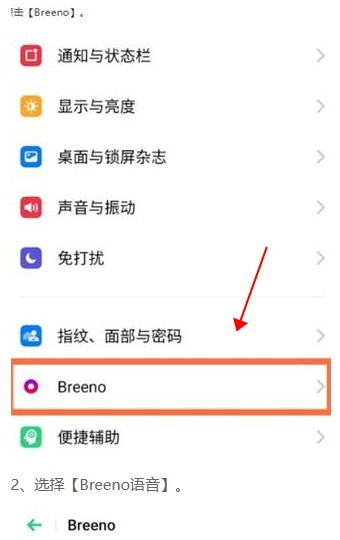 打开手机设置,选择“Breeno”选项。