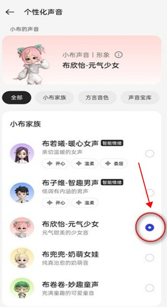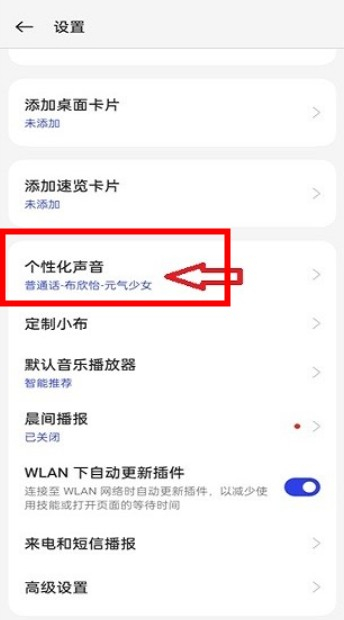 打开小布助手,进入设置,选择“个性化声音”选项。