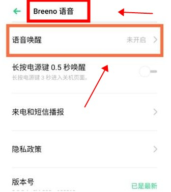 点击“Breeno语音”,找到“语音唤醒”功能。