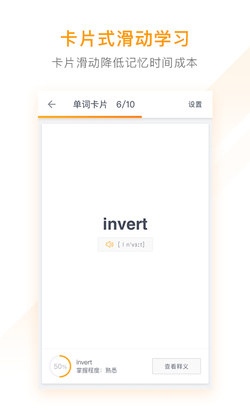用户仅需轻轻一划背诵完成,左划完成本轮记忆,右划查看单词具体内容,背单词操作如此流畅简单。