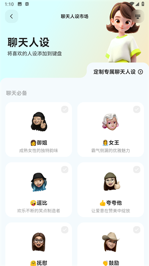 小恋键盘是一款优质的恋爱辅助键盘软件,能帮你在聊天时打破尴尬,让交流轻松无压力,还能带来个性化体验——你可以根据自身喜好和需求对键盘进行自定义设置,充分满足个性化需求。它支持智能输入功能,会依据你的输入习惯和上下文,智能推荐可能的输入内容;同时具备语音输入功能,可实现语音转文字。此外,软件还提供自定义键盘布局、字体样式等选项,拥有海量聊天人设,能轻松提升聊天趣味性与亲密度。