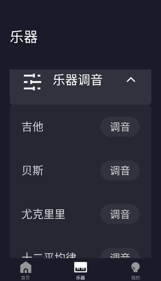 3、应用还支持吉他、贝斯等弦乐器调音,切换乐器类型后会自动匹配对应音高标准,调音结果可保存为历史记录。