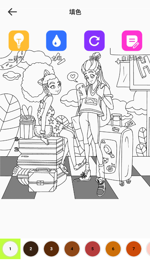 1、启动后,在主页导航栏选择"填色绘画"功能入口进入创作界面。