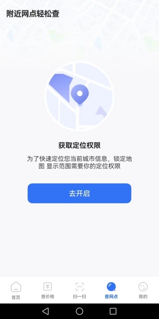 4、查网点板块,用户需开启软件的地址权限,之后就可以查看周边快递网点了。