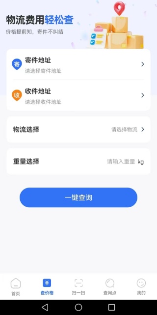3、操作极简,无论是查询快递、预估运费还是查找网点,都只需简单几步,界面清晰直观,老人小孩也能轻松上手使用。