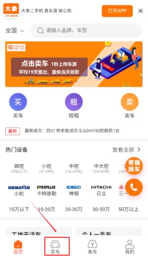 1、打开大象二手机,在底部菜单中找到“买车”选项。