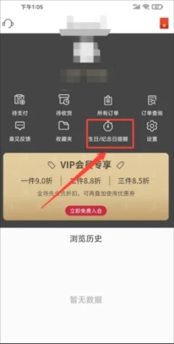 2、进入个人页面后,找到并点击【生日/纪念日提醒】功能入口。