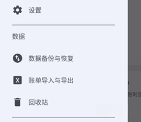 1、导入账单的操作并不复杂。有需要的朋友可以再次点击左上角的设置选项,接着选择“账单导入与导出”功能。