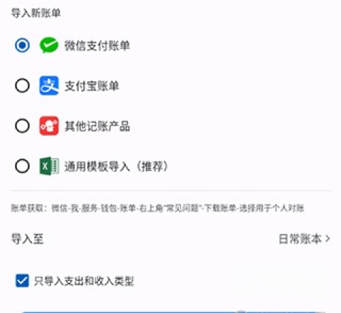 2、这时,您可以挑选新账单来导入,还能导入本地的EXCEL账单,真的特别方便!