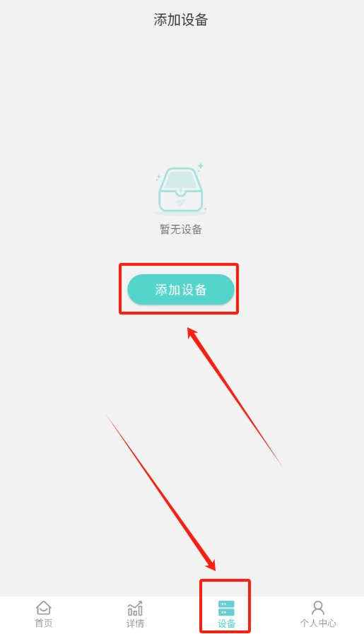 2、登录成功后,进入设备页面,点击添加设备按钮以准备连接设备。