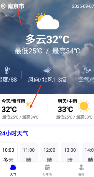 2、要是所选城市为南京,系统会立即为大家呈现南京最新的天气状况。